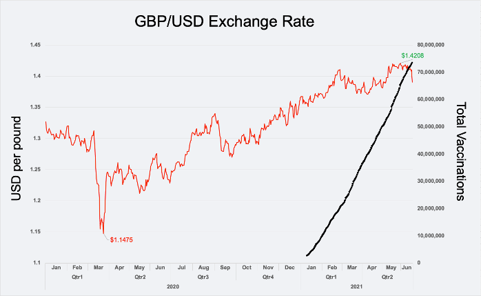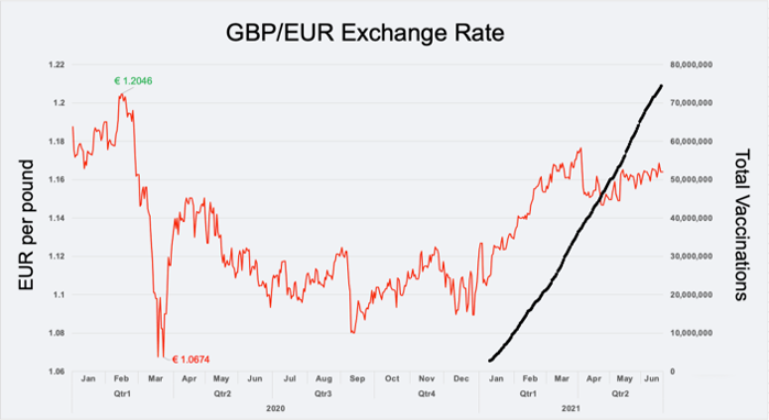 The UK’s success in vaccinating its population has won it international recognition – and it has also helped it on the road to an economic recovery. This is reflected in a steady rise in the value of sterling.