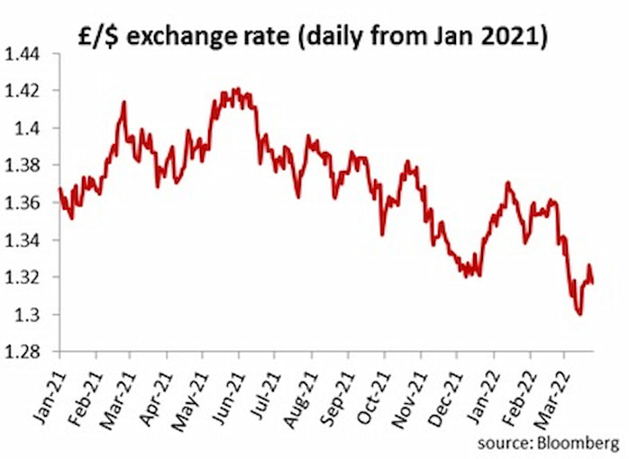 My opinion is that the risks of sustained cost push inflation pressures that will prompt a sharp reduction in net disposable incomes, will damage interest rate expectations in Q2, thereby also damaging sentiment surrounding the currency. Geopolitical risks also could create further financial market volatility, as well as additional downside risks to the macroeconomic outlook. We didn’t get the test of €1.15 in Q1 as I had suspected we would, but we did test $1.30. For Q2, £/€ is likely to push lower towards €1.16 and possibly €1.15, but if there is a further escalation in the Russia/Ukraine conflict, the euro could come under renewed short-term pressure. As for £/$, renewed tests lower are more likely, with the Federal Reserve seemingly getting more aggressive on monetary tightening requirements. I fear that $1.27/1.28 will prove insufficient to hold the downside risks, and a push towards $1.25 will occur over Q2.